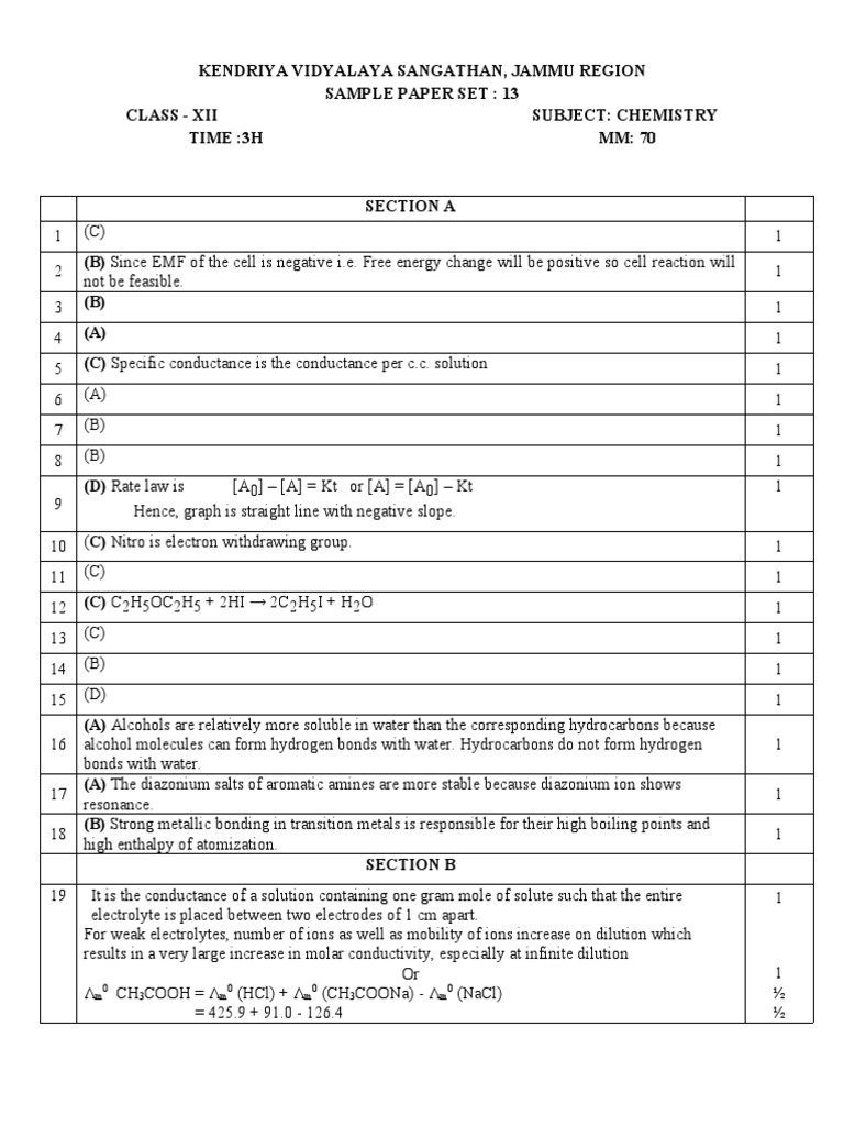 Class XII Chemistry Sample Paper 13 | PDF | Ion | Electrolyte