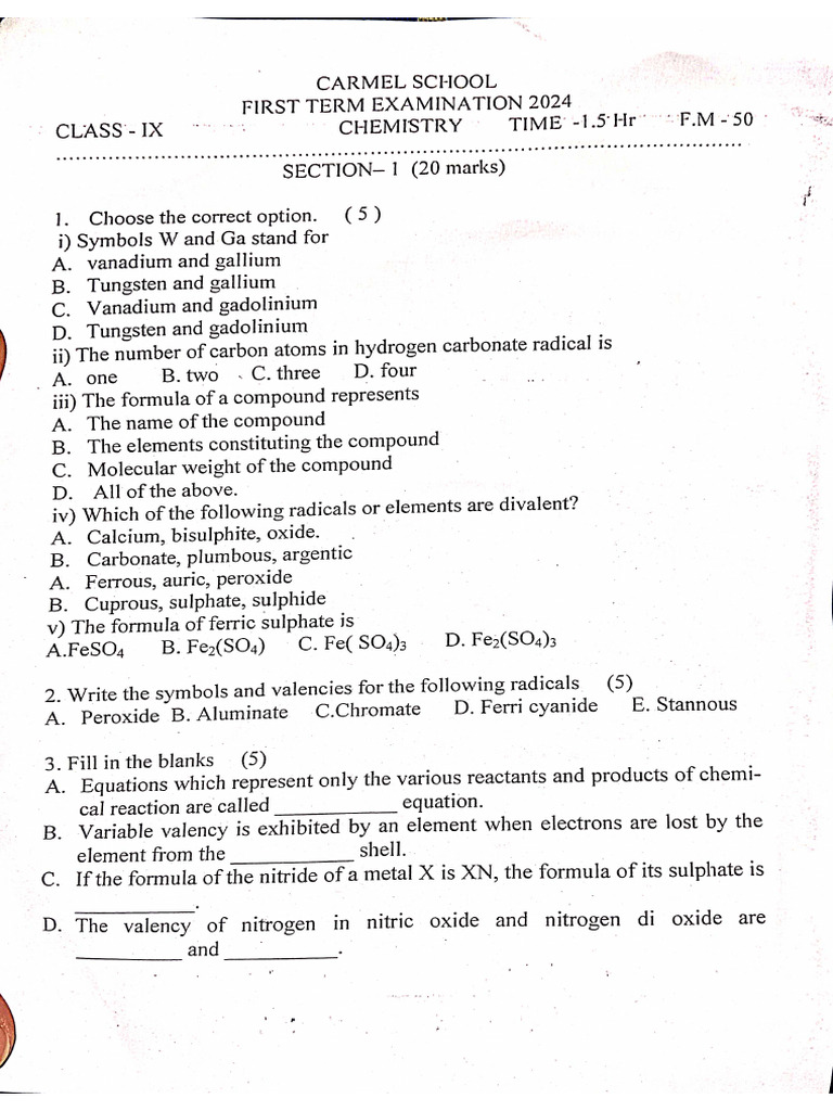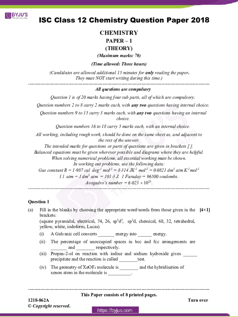 Chemistry Paper 1: All Questions Are Compulsory | PDF | Carbon ...