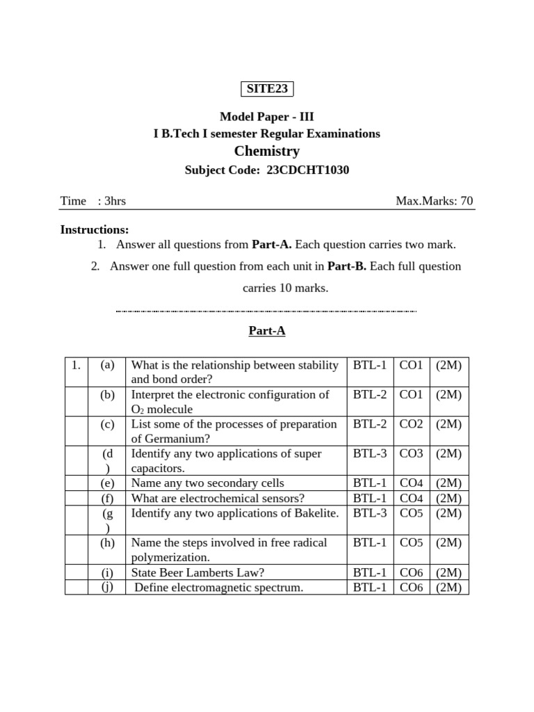 Chemistry Model Paper 1 | PDF | Acid | Chemical Bond