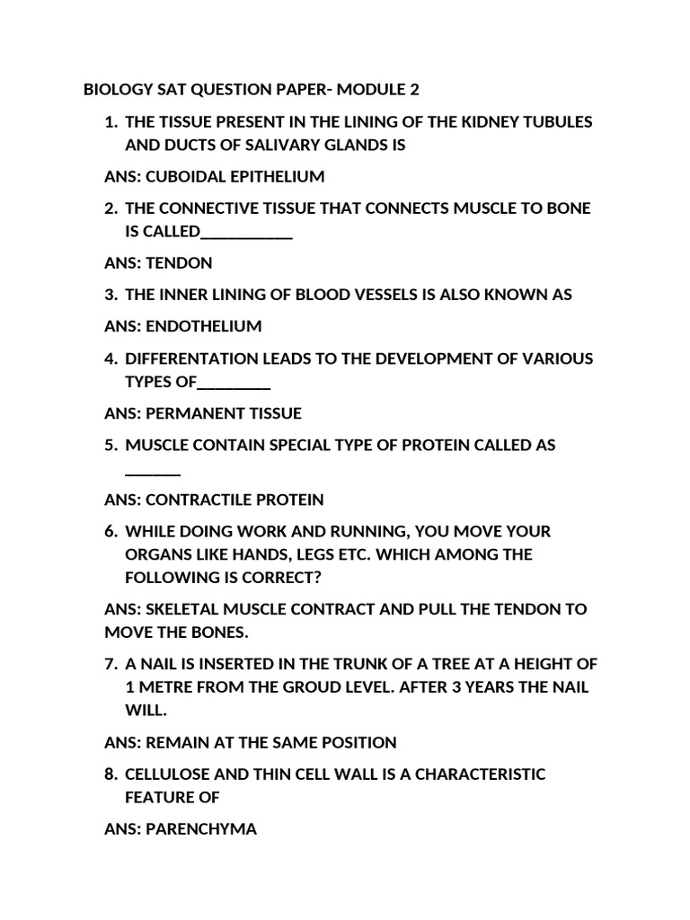 Biology and Chemistry Module 2 Papers | PDF | Tissue (Biology) | Mixture