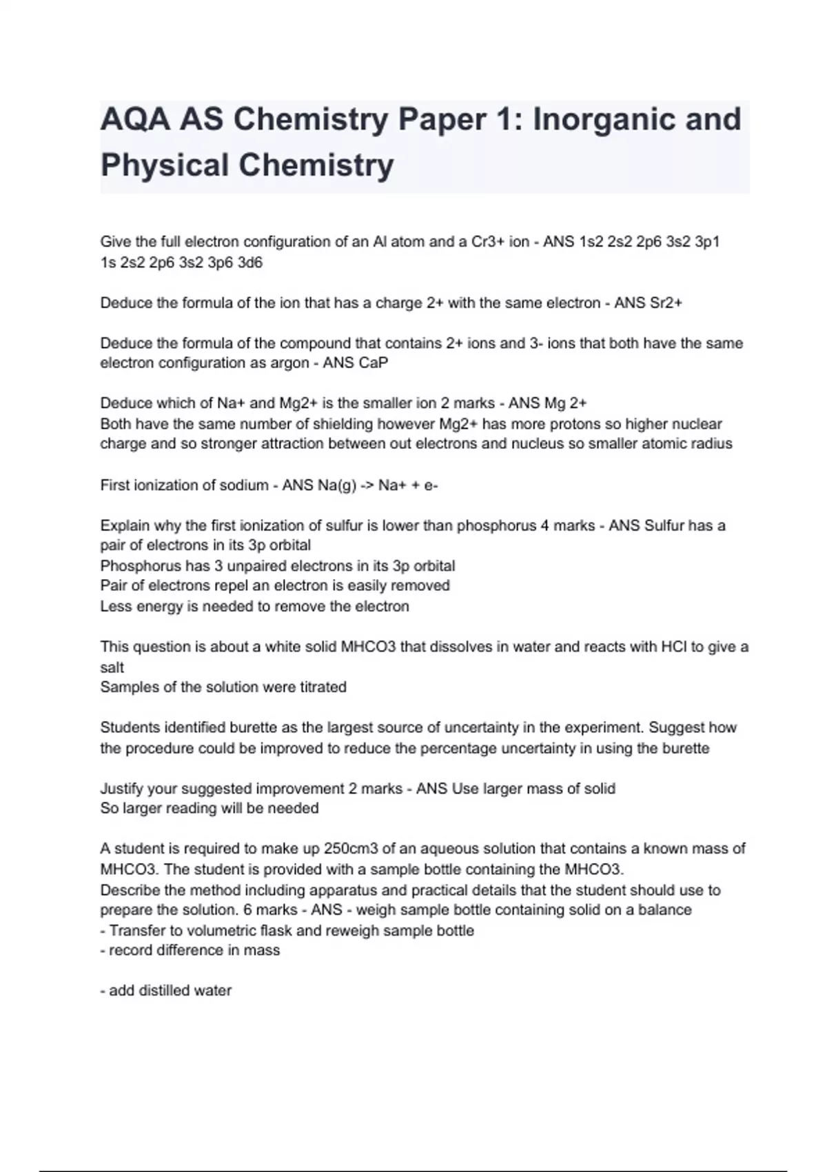 AQA AS Chemistry Paper 1: Inorganic and Physical Chemistry Exam 2024/ ...