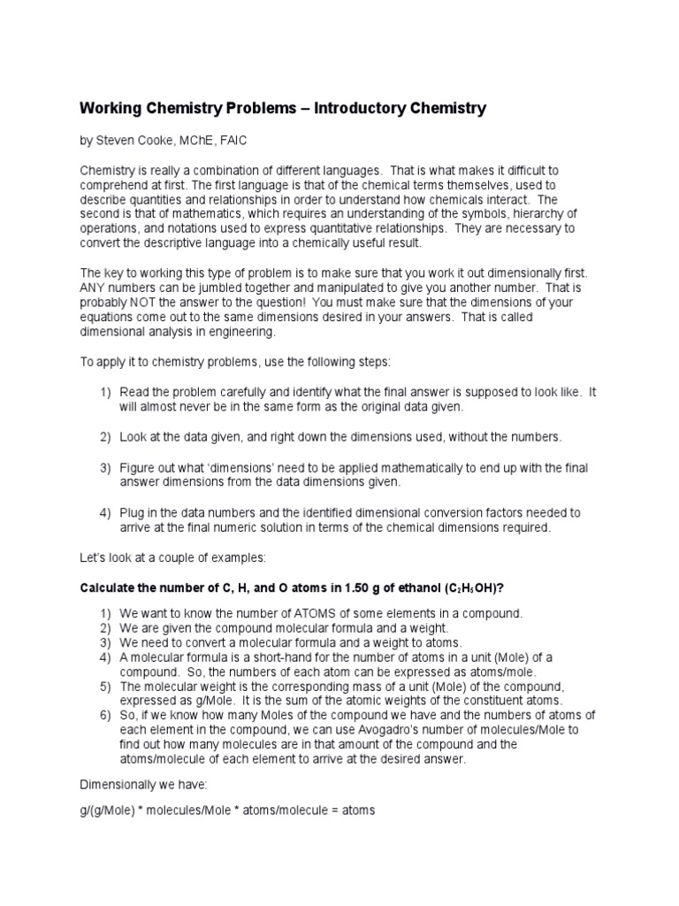 How To Work Chemistry Problems - Examples | PDF | Mole (Unit) | Molecules