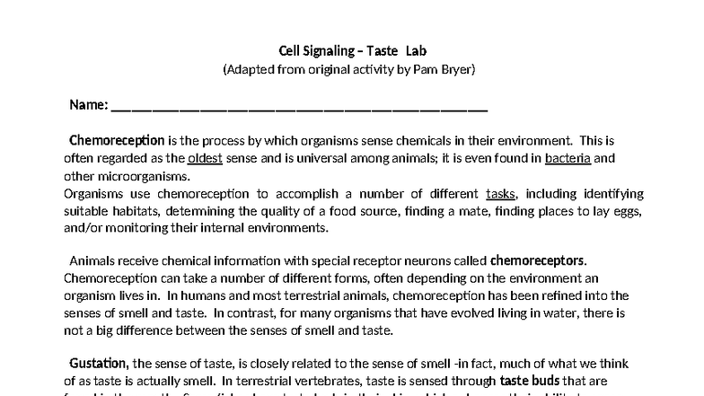 Cell Signaling Taste Lab: Exploring Chemoreception and Taste Perception ...