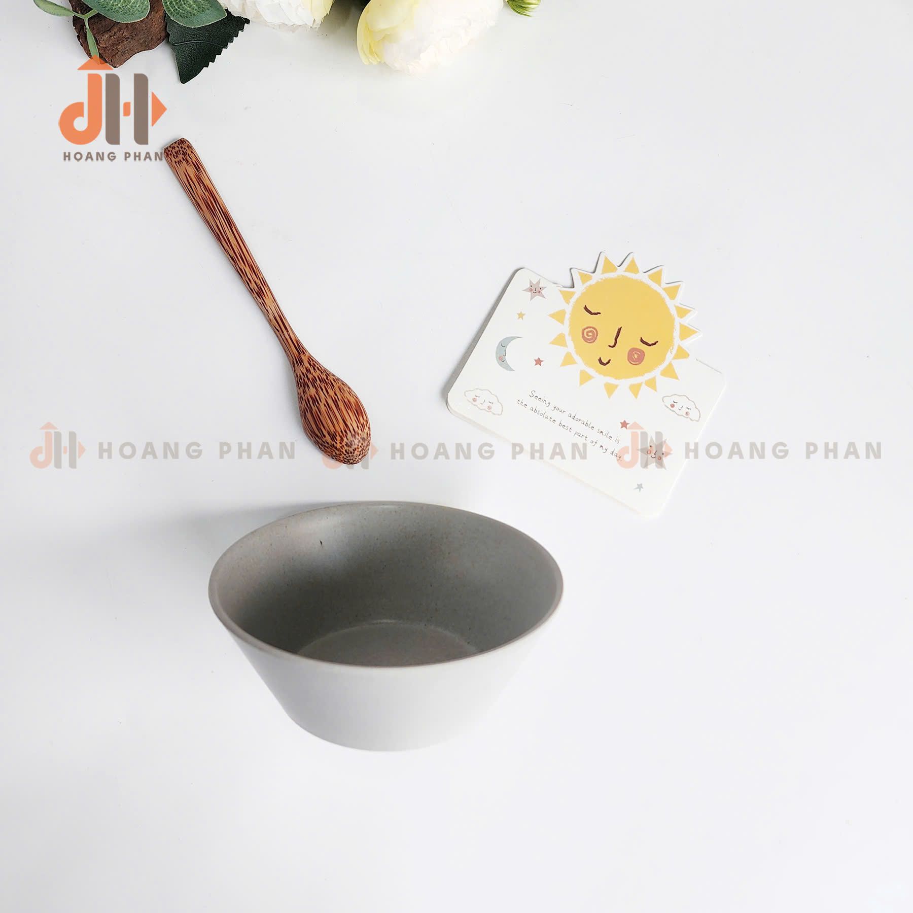 [Quà Tặng] Bộ Quà Tặng gồm chén nhựa lúa mạch màu xám + thìa dừa + thi ...