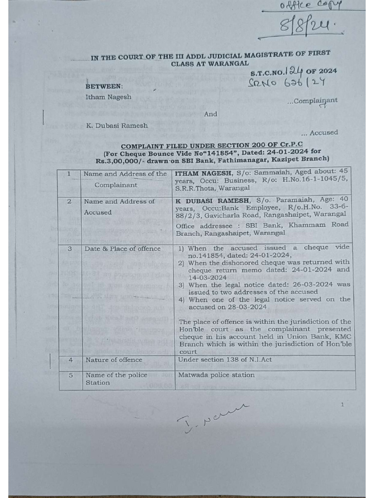 How to Write Cheque Bounce case Judgment | Nithyakalyani.BA.ML ...