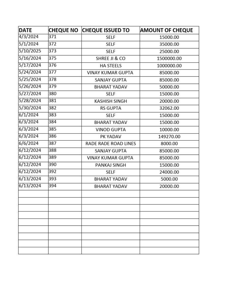 Cheque Issue Register From Bapuji Mumbai Shop