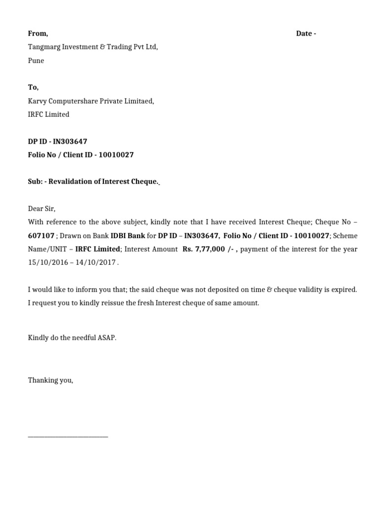 Cheque Revalidation - 2 - Issue Fresh Redemption, Dividend Cheque - If ...
