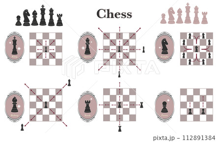 Infographics of the basic rules and piece moves of the chess game, the ...