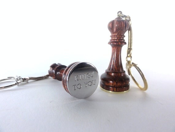 Chess King Wooden Keyring Personalised Silver or 24k Gold Plated Custom ...
