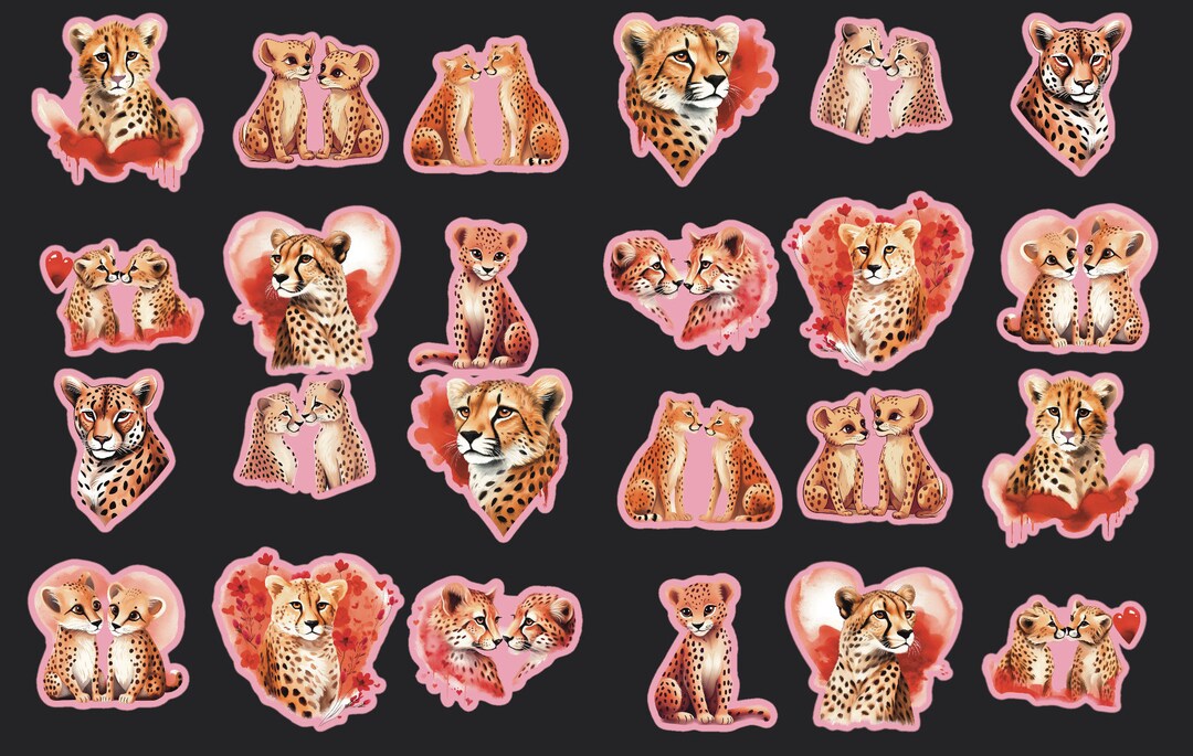 Cheetah Stickers, Set of 24 Stickers, Journal Sticker, Valentine ...