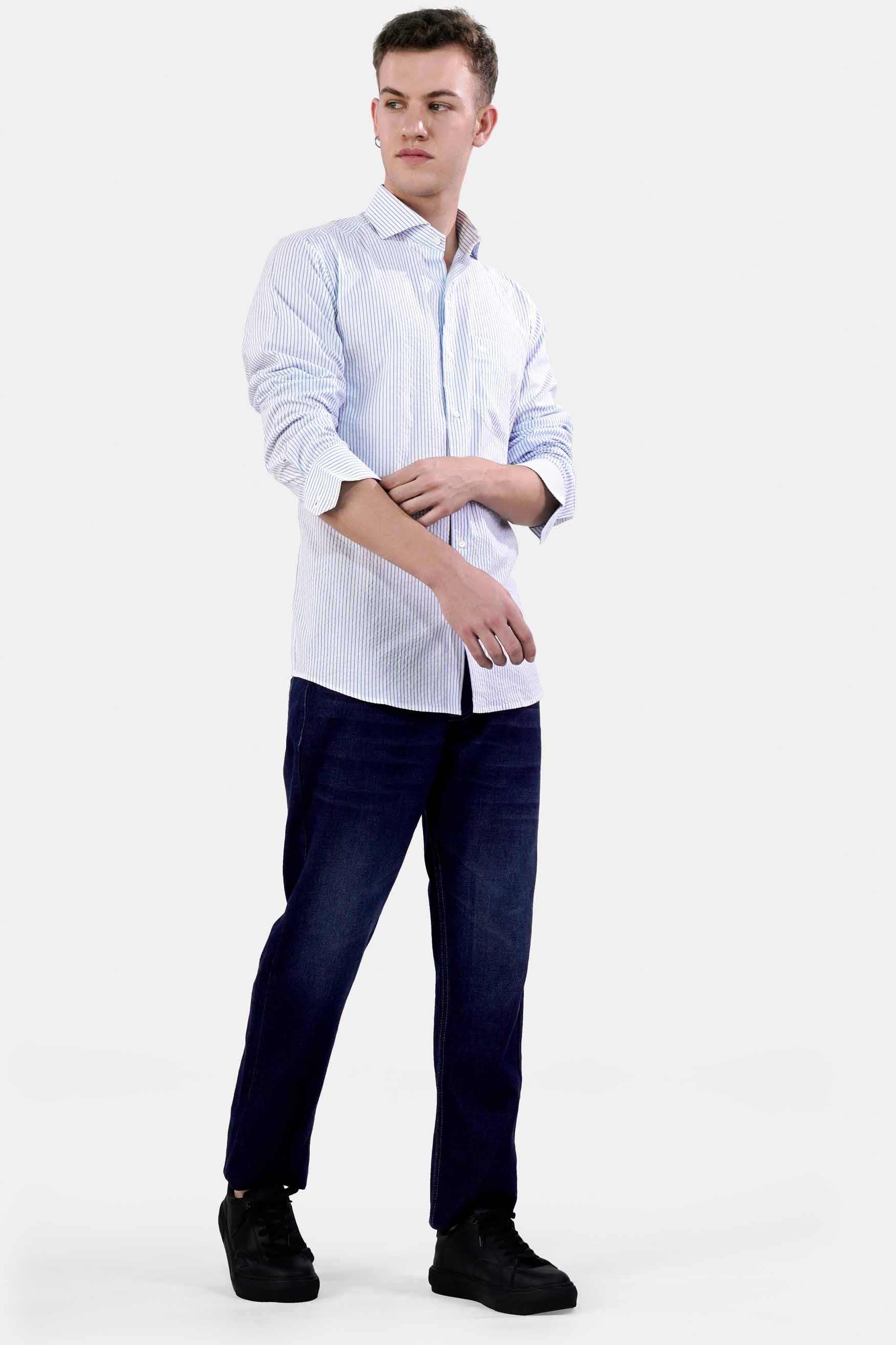 Chetwode Blue and White Formal Stripes Premium Cotton Shirt For Men