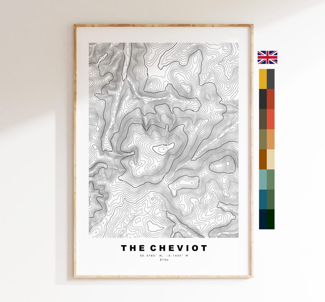 The Cheviot Print - Contour Map - the Cheviot Map - Northumberland - UK ...