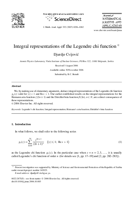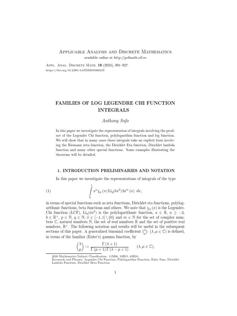 Legendre Chi Function Integrals Analysis | PDF | Number Theory ...