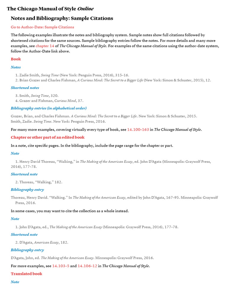 Chicago Manual of Style 17th Ed. Sample Citations & Notes Guide - Studocu