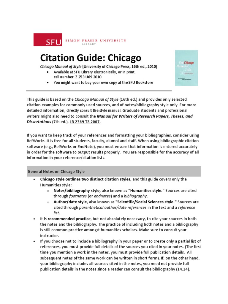 Chicago Citation: Chicago Notes-Bibliography Style Guide | PDF ...