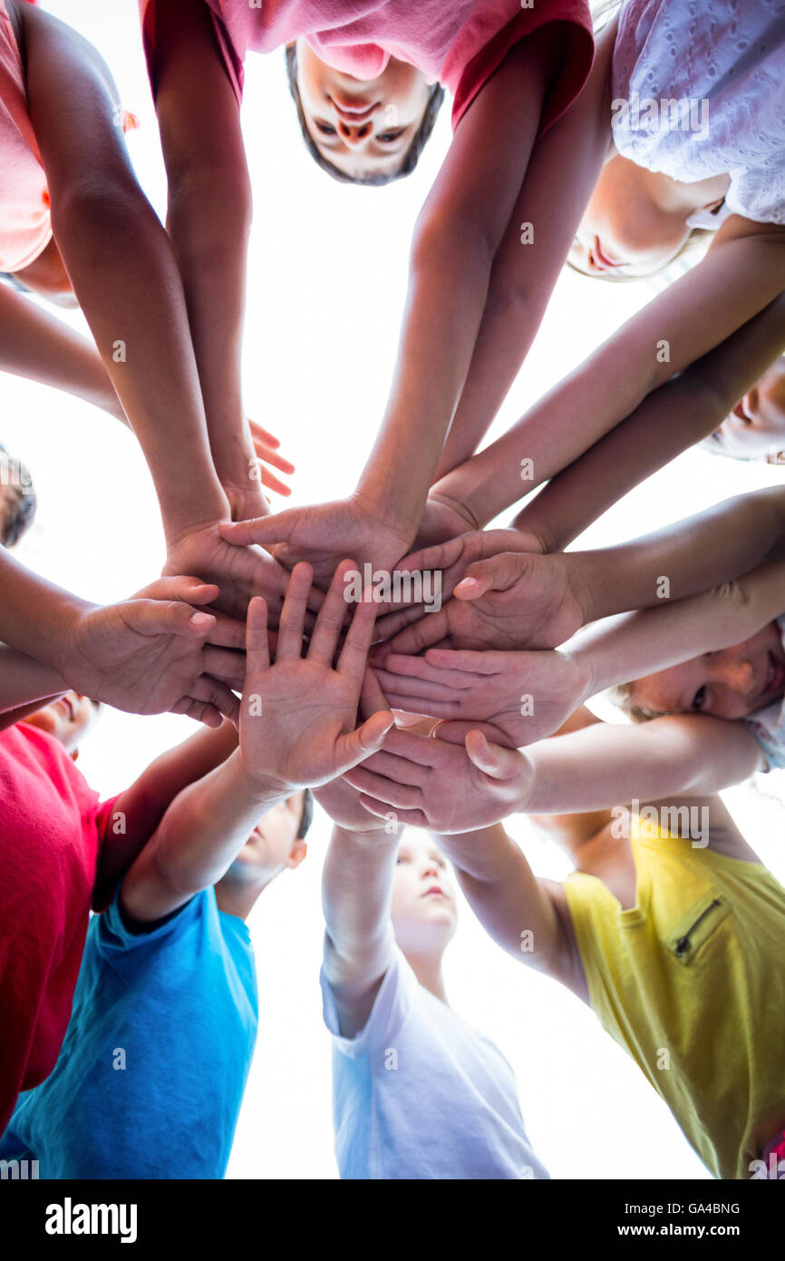 School kids stacking hands in campus Stock Photo - Alamy