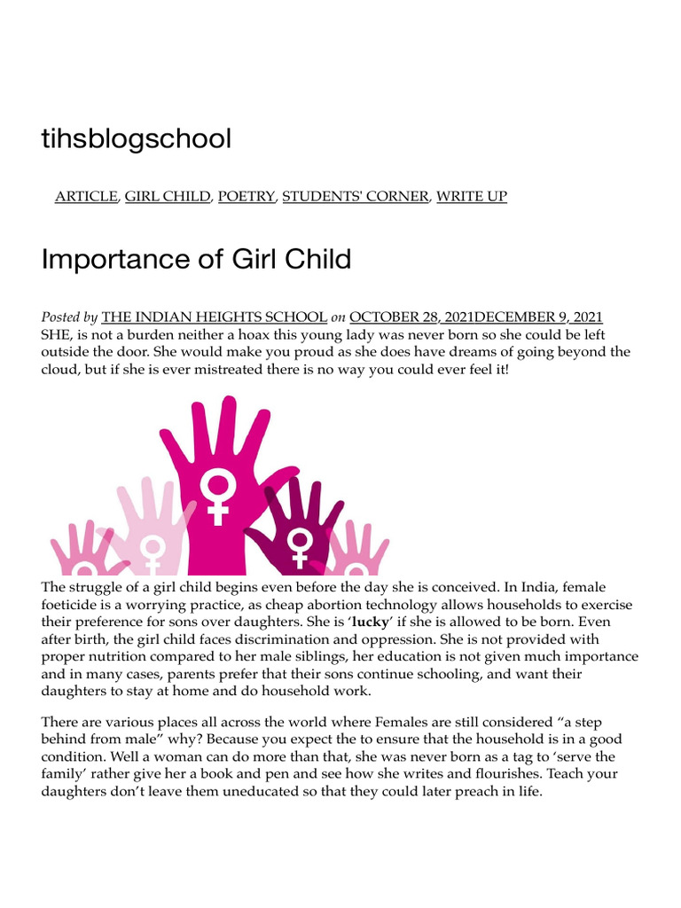 Importance of Girl Child - Blog (Jianna Thomas) | PDF | Woman