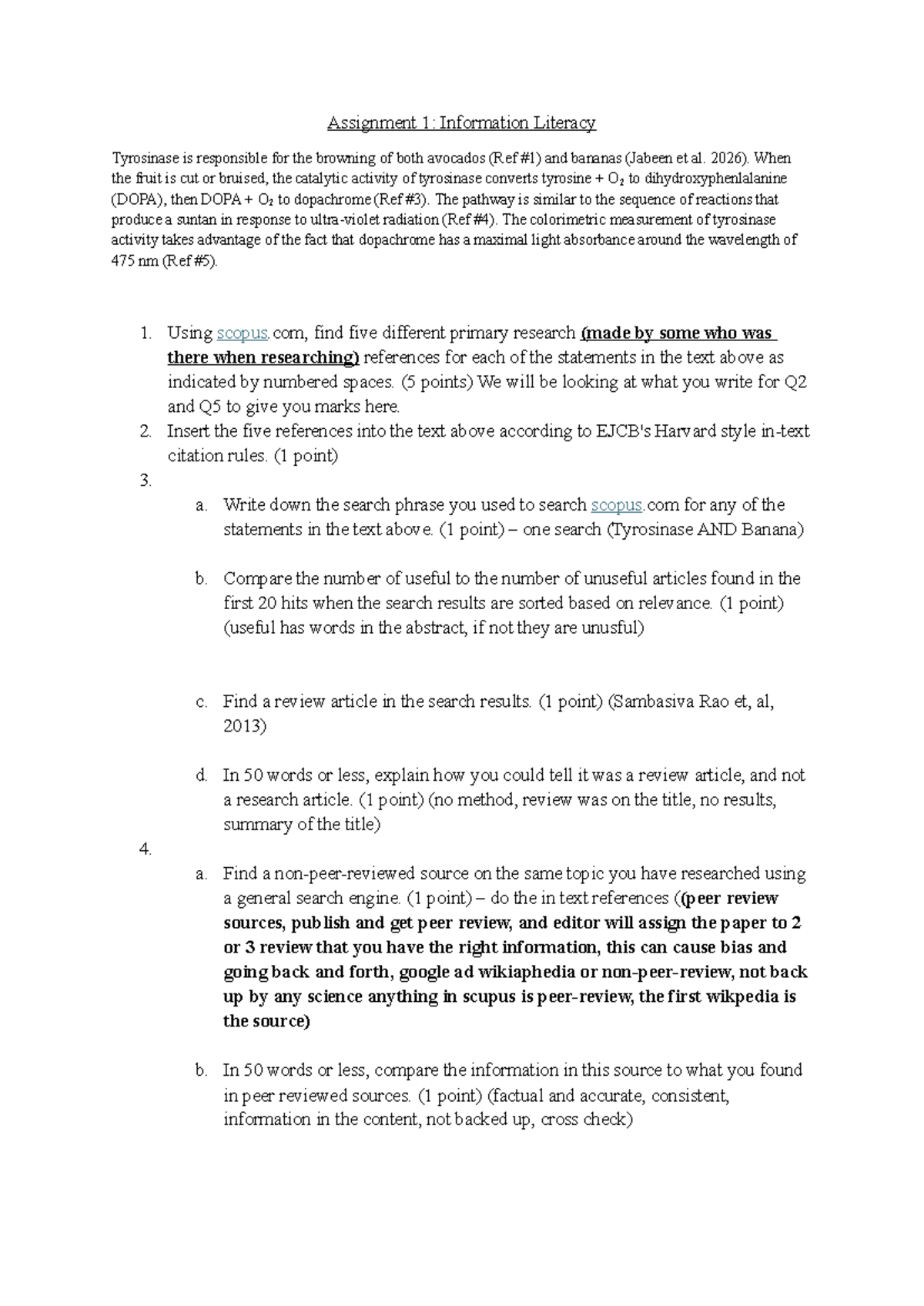 Assignment 1: Info Literacy on Tyrosinase and Browning Effects - Studocu