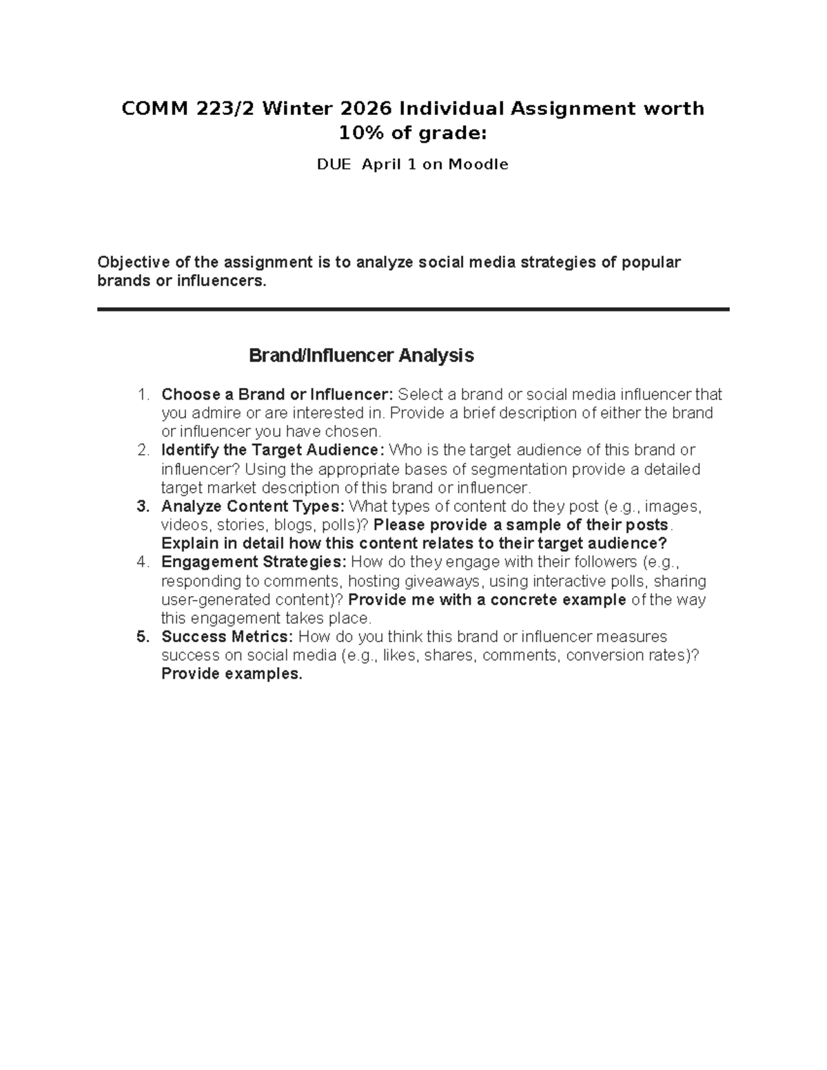 COMM 223 Winter 2026 Individual Assignment: Social Media Analysis - Studocu
