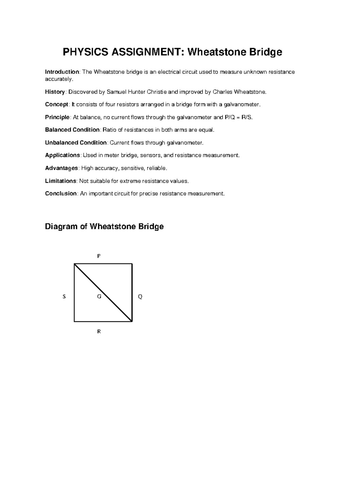 PHYSICS ASSIGNMENT: Understanding the Wheatstone Bridge - Studocu