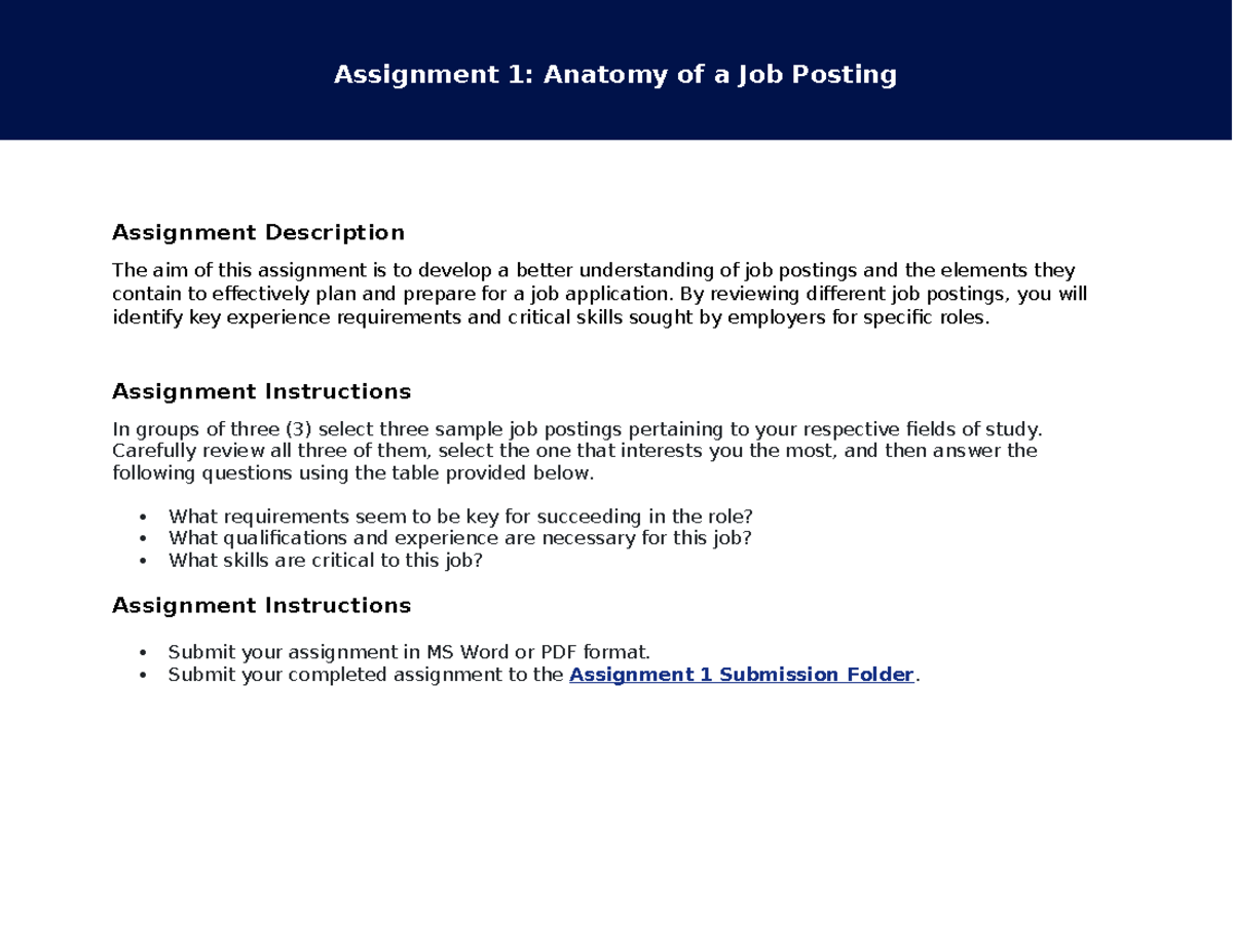 Career Management - Assignment 1: Analyzing Job Postings - Studocu