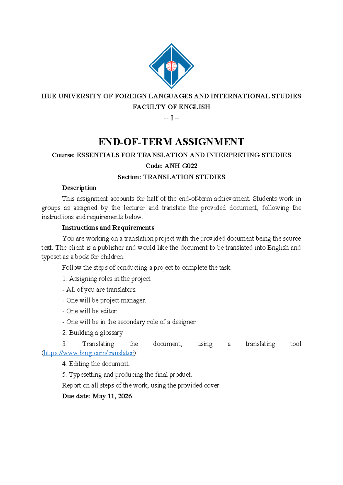 ANH G022 Translation Project Assignment for Children's Book - Studocu
