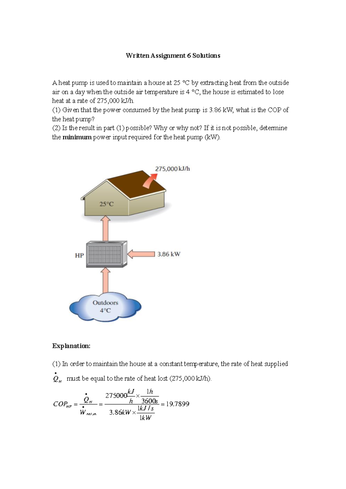 Written Assignment 8: Heat Pump COP Analysis and Solutions - Studocu