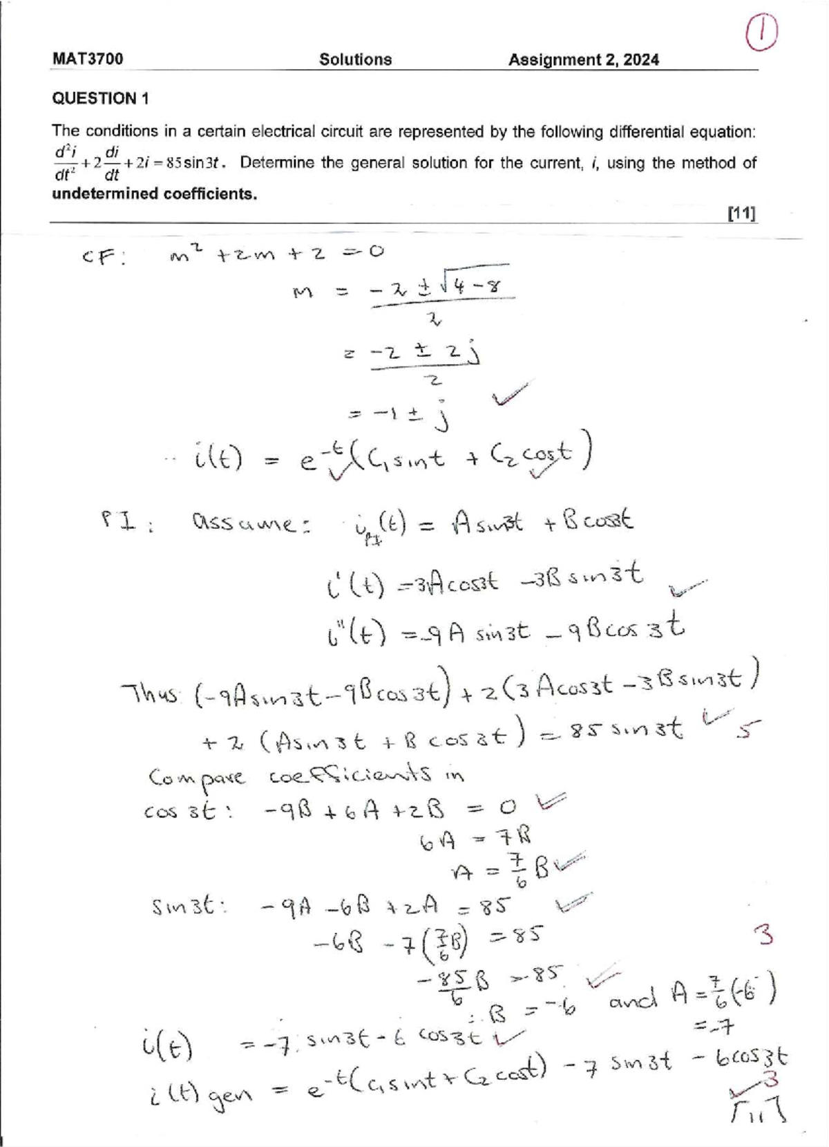 MAT3700 Assignment 2 Solutions - Differential Equations 2024 - Studocu