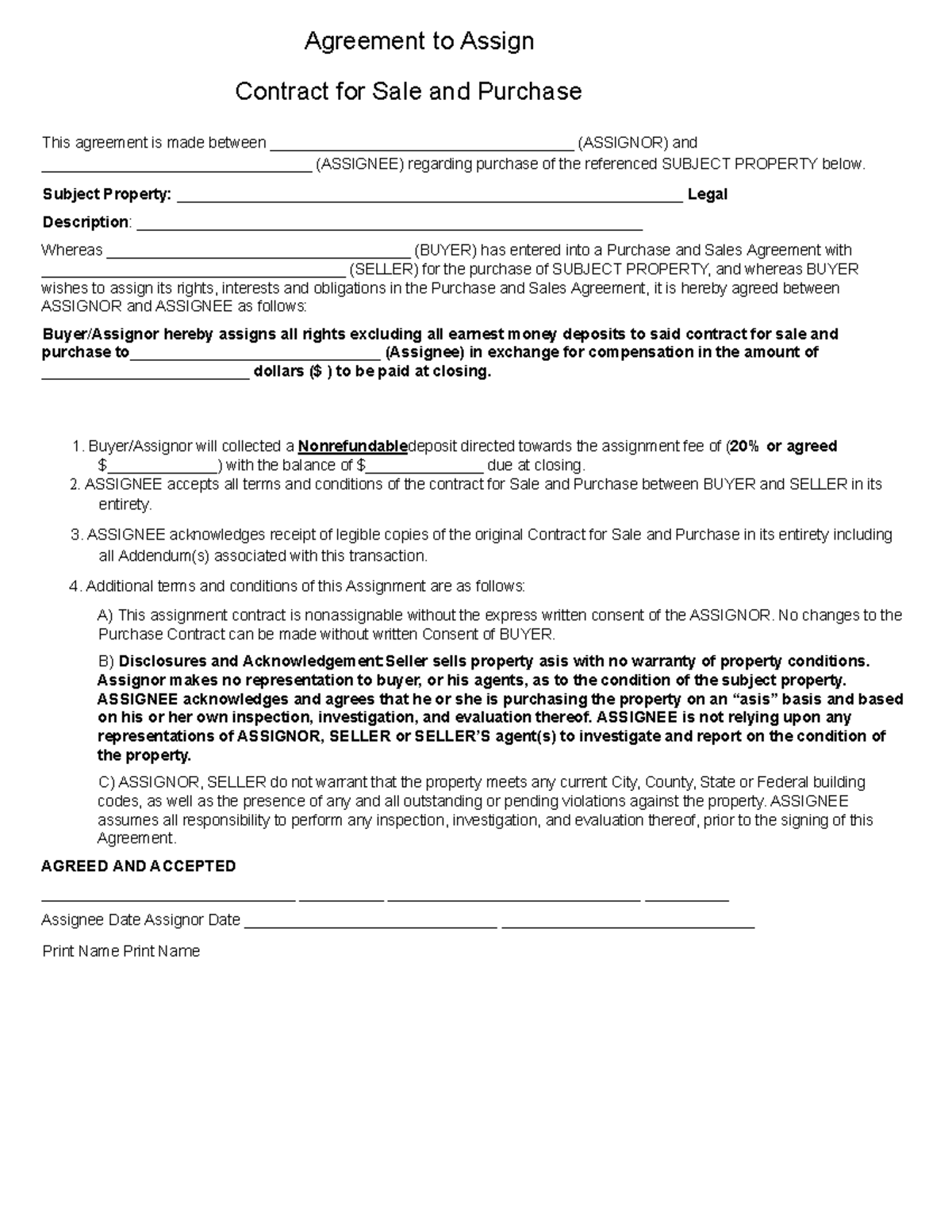 Blank Assignment Agreement for Sale and Purchase - Studocu
