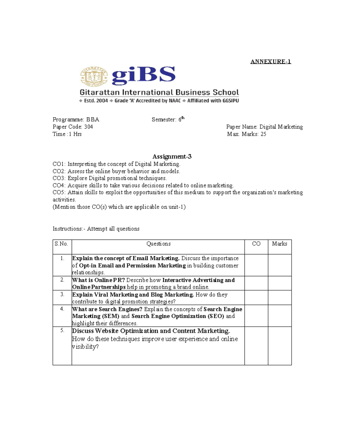 Digital Marketing Assignment 3 - BBA 304 - Semester 6 - Studocu