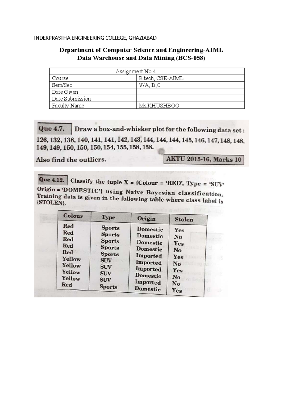 DWDM Assignment 4 - Inderprastha Engg College, B.Tech - Studocu
