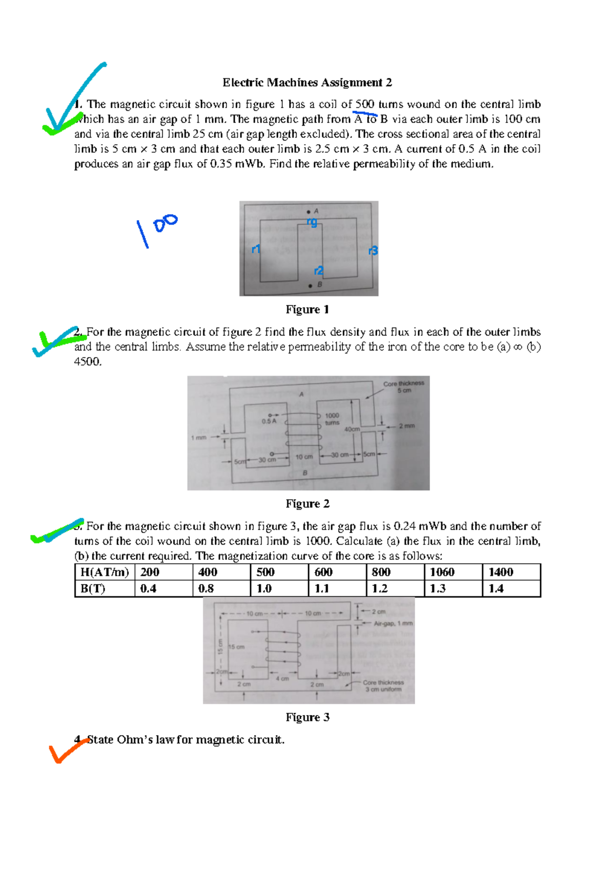 EM 2: Electric Machines Assignment 2 - Magnetic Circuit Analysis - Studocu