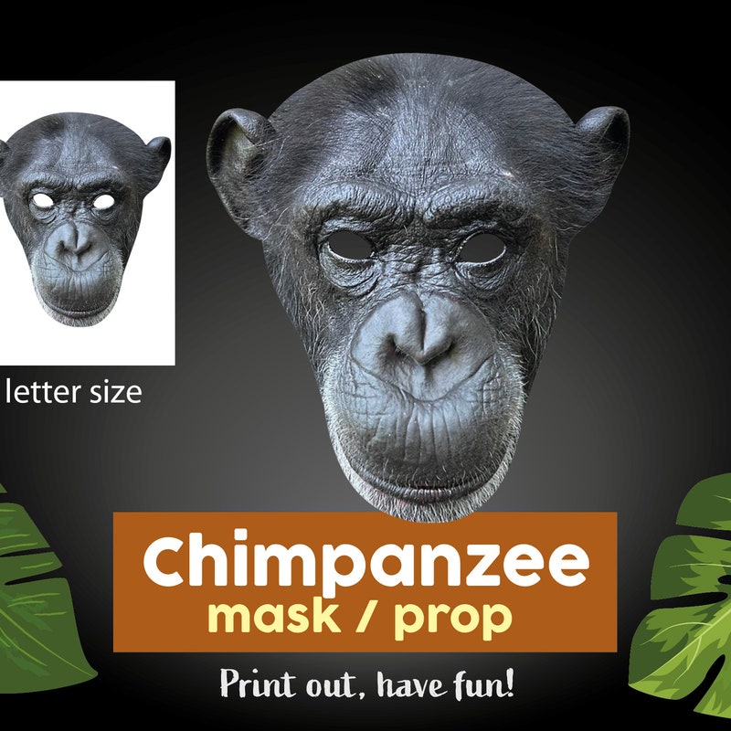 Printable Chimpanzee Mask, Chimpanzee Prop, Chimp, Realistic Mask ...