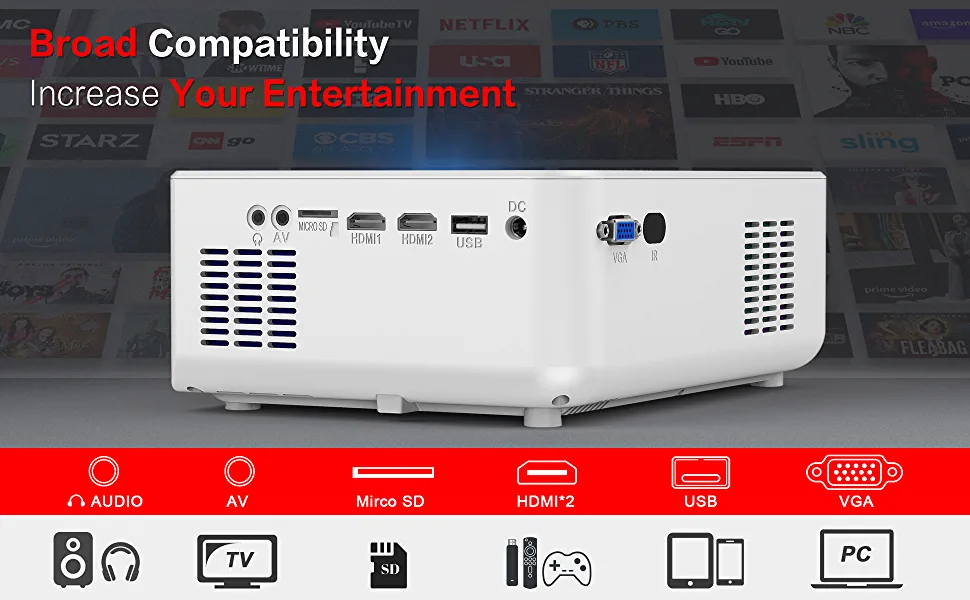Upgraded Mini Projector, Full Hd 1080p Home Theater Video Projector ...