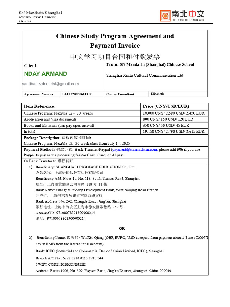 LLF1220250601317 Chinese Program and Payment Invoice To NDAY ARMAND ...
