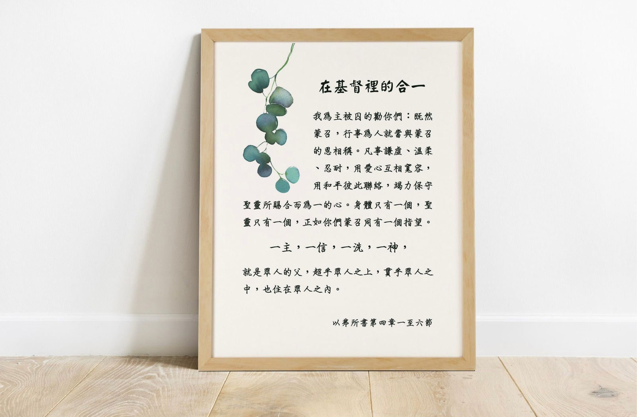 Chinese Bible Verse Print, Ephesians 4:1-6 Unity in Christ, Chinese ...