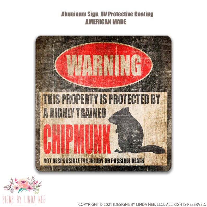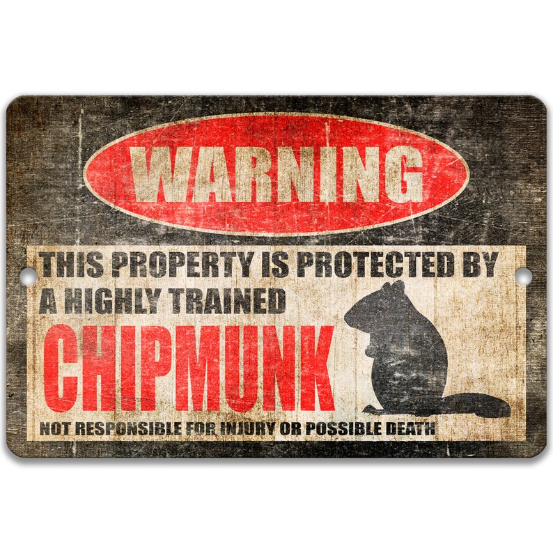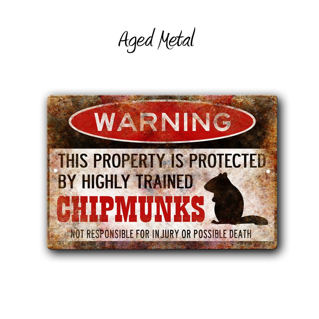 Chipmunk Warning Sign, Highly Trained Guard Chipmunk Metal Sign, Funny ...