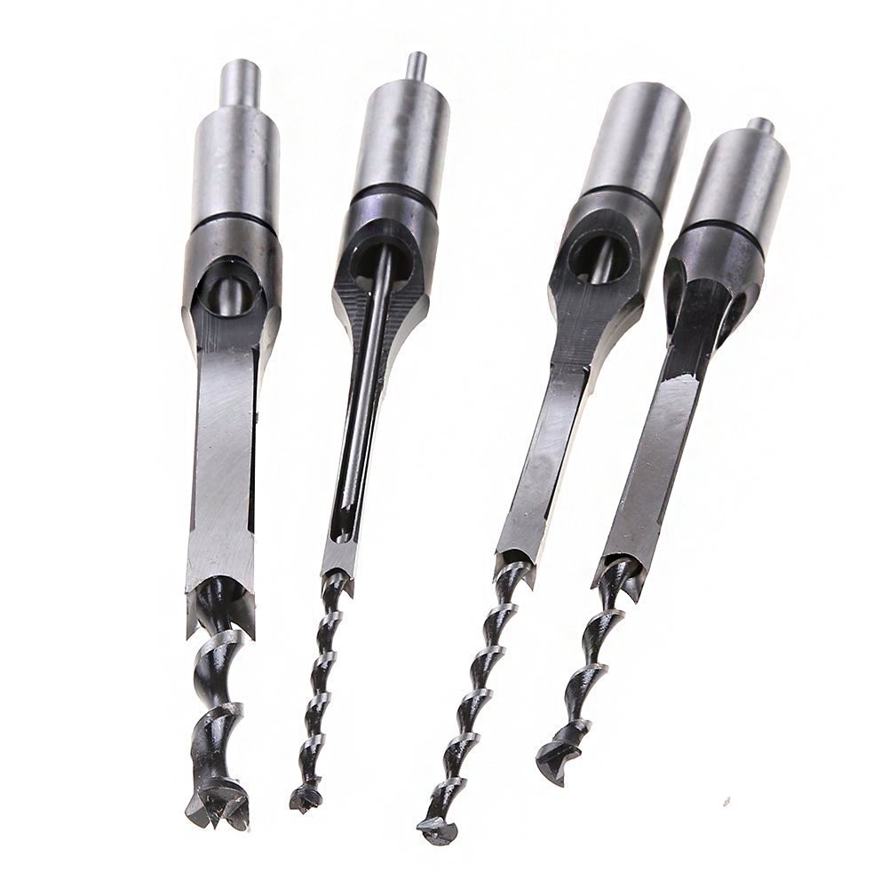 4Pcs Woodworking Square Hole Drill Bits Wood Mortising Chisel Set ...
