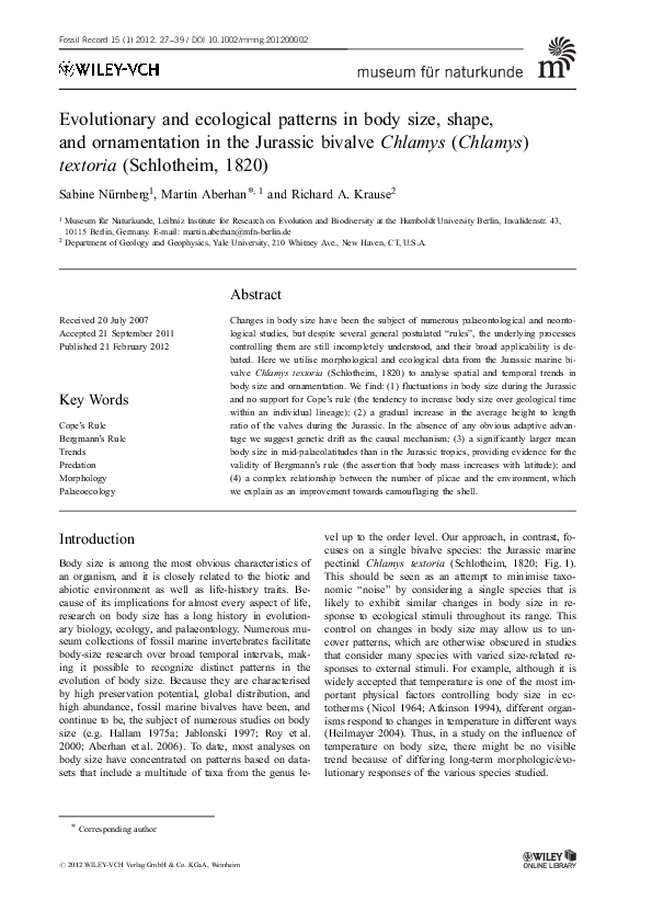 (PDF) Evolutionary and ecological patterns in body size, shape, and ...