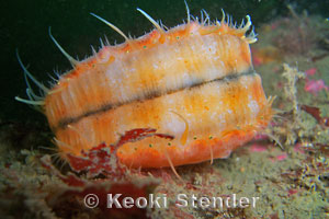 Fan Shell or Doughboy Scallop (Chlamys asperrimus) photographed in ...