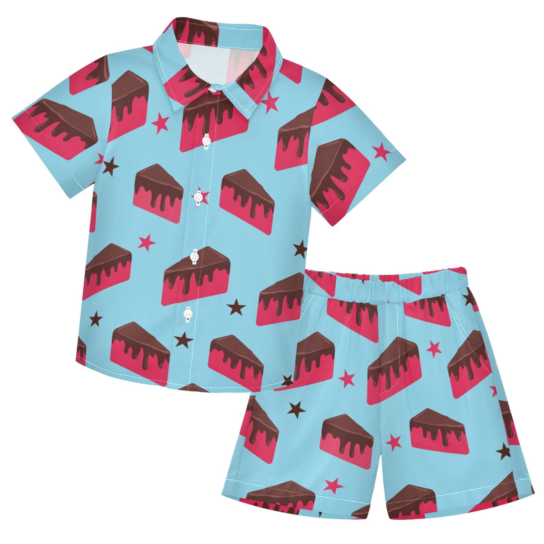 Chocolate Cake Pattern Boys' Hawaiian Shorts Sets Button Down Shirts 3T ...