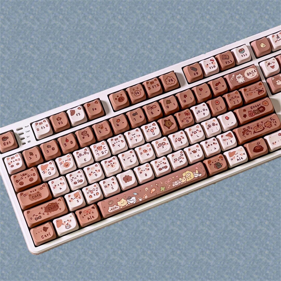 140 Keys Kawaii Cartoon Cat Keycap Set, Chocolate Keycaps, MAO Profile ...