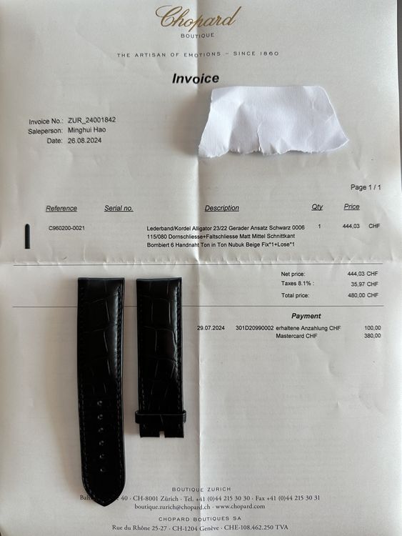 Chopard Alligator Watch Strap 23/22mm, Black, New w/ Invoice (Neu und ...