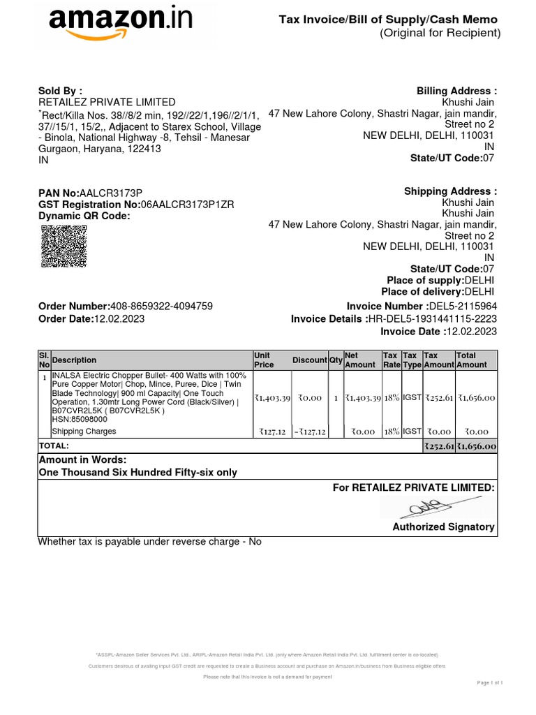 Jewellery Invoice Sample | PDF