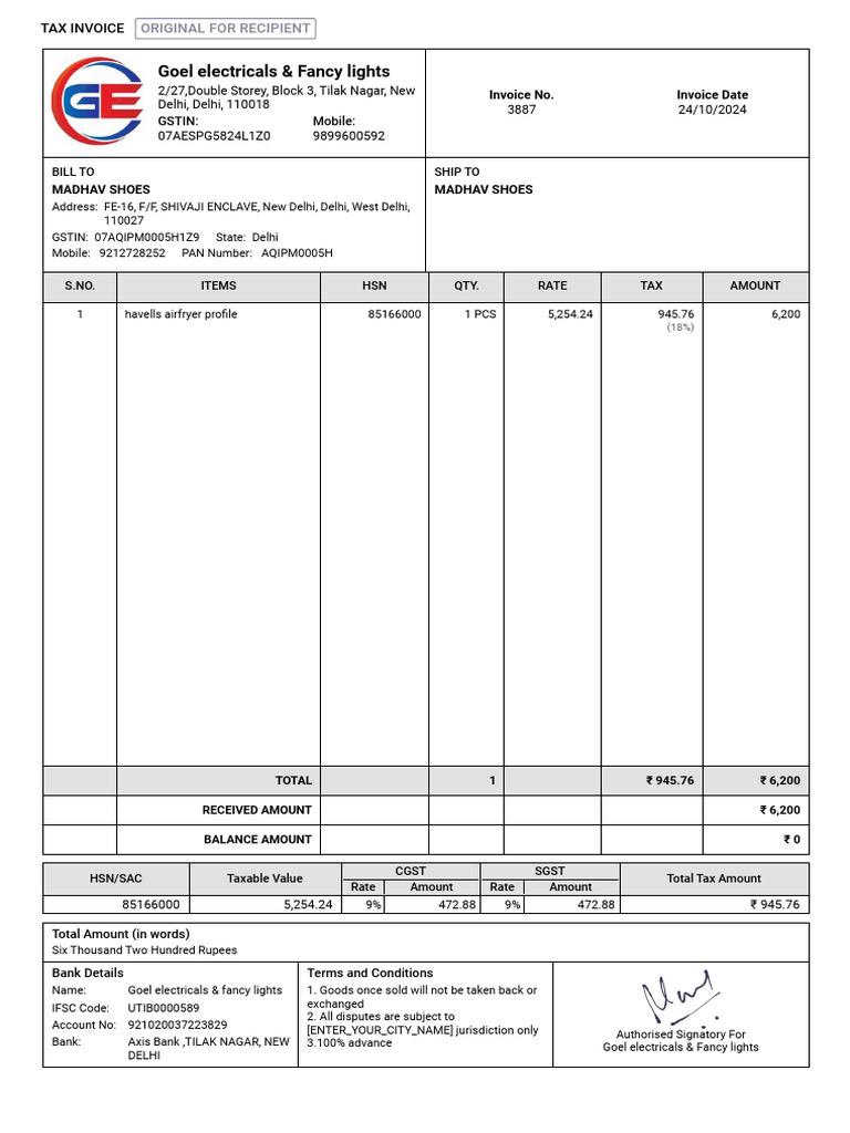Madhav Shoes Sales Invoice 3887 | PDF | Public Finance | Taxation