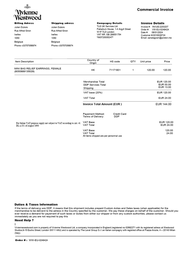 USA Louis Vuitton invoice example in Word and PDF format, fully ...