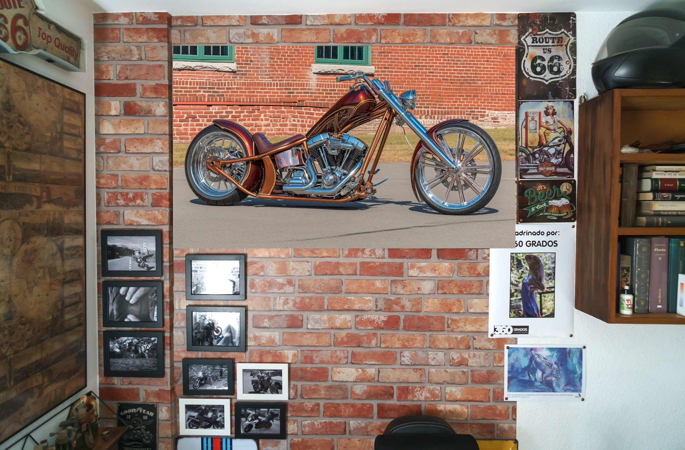 Printable Picture of a Chopper-type Motorcycle Posing With a Red Brick ...