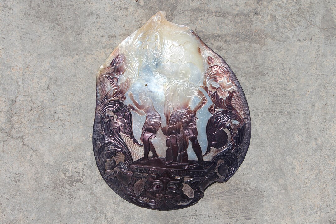 19th Century Large French Shell Depicting Christopher Columbus Holding ...