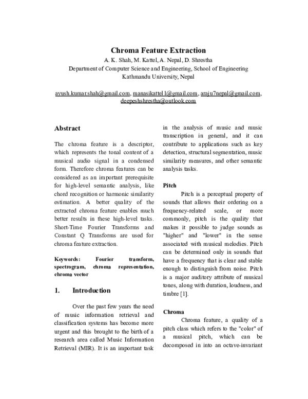 (PDF) Chroma Feature Extraction