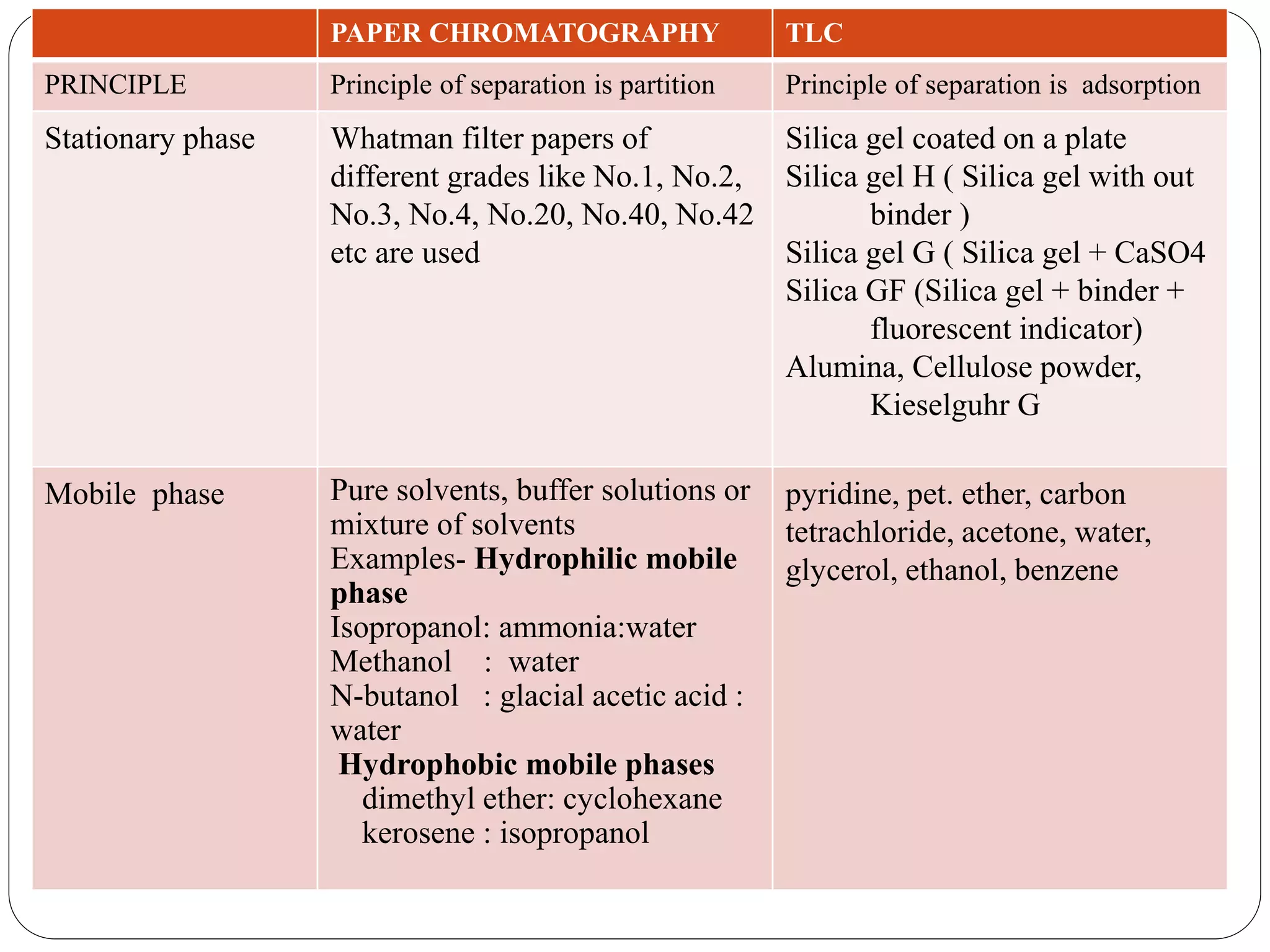 Comparision of thin layer chromatography and paper chromatography | PPTX